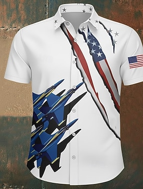 Pánské Americká americká vlajka 4. července 250. výročí USA veteráni Košile Košile pro volný čas Kubánská košile Krátký rukáv Armádní armáda Streetwear Dovolená Léto Jaro Košile s límečkem Camp 3D