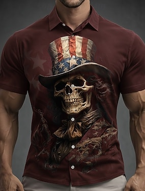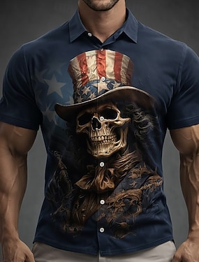 250. výročí Ameriky Den nezávislosti Pánské tričko s vlajkou USA vlastenecké tričko s lebkami letní tričko s knoflíky krátký rukáv módní casual venkovní dovolená každodenní nošení letní klopový 3D