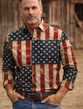 Americký den nezávislosti Pánské Grafika 4. července 250. výročí USA Americká vlajka Košile Košile s knoflíkem Havajské košile Dlouhý rukáv Vinobraní Na běžné nošení Plážový styl Venkovní Dovolená