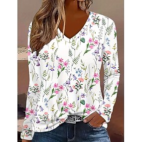 Dámské Tričko Tónované Květinový Grafika Vinobraní stylové Klasické Dlouhý rukáv Do V Běžné topy Denní Vystřižený Tisk Rubínově červená Vodní modrá Fialová Trávová zelená Jaro Podzim