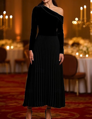 A-Linie Koktejl Šaty Elegantní Formální šaty Formální Svatební K lýtkům Dlouhý rukáv Jedno rameno Samet s Sklady 2025