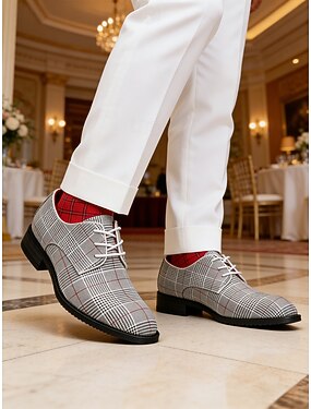 Pánské svatební boty z umělé kůže, s kostkovaným vzorem, moderní a pohodlné na svatební hostiny