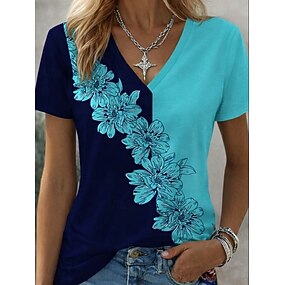 Dámské Tričko Tisk Květinový Grafika Hudba Vinobraní stylové Klasické Krátký rukáv Do V Běžné topy Denní Sport Jdeme ven Vodní modrá Bílá Léto Jaro Podzim