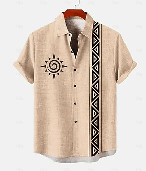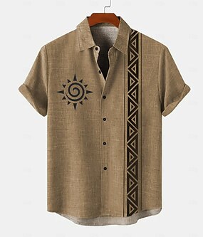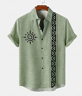 Pánské Slunce aztécký Tričko Tričko Henley Krátký rukáv 3D tisk Designové Geleneksel Ležérní Denní Léto Vodní modrá Trávová zelená Khaki Do V Henley Tričko Henley