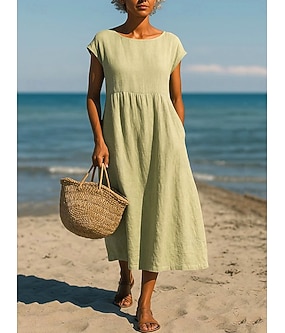 Dámské Midi šaty Áčkové šaty Letní šaty prázdniny Na běžné nošení Cikánský Denní Volný Bez vzoru Krátký rukáv Tričkový Úzký výstřih Černá Tmavě červená Světle zelená Světlá růžová Léto
