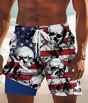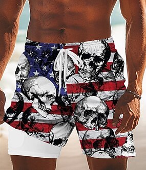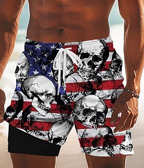 Pánské Americká americká vlajka 4. července 250. výročí USA Vlastenec Podšívané šortky Plavecké šortky 2v1 Plavky pánské Středně vysoký pas Havajské Dovolená Oblečení na pláž Boční kapsy S kompresn