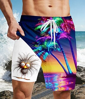 Pánské Kokosový strom kuřátko Legrační Podšívané šortky Plavecké šortky 2v1 Plavky pánské Středně vysoký pas Havajské Dovolená Boční kapsy S kompresní vložkou Elastická šňůrka v pase Návrhář Oblečení
