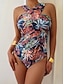 Dámské Plavky Jeden kus Monokini Plavky Zaštíhlující Vysoký pas Štíhlý Volná záda prázdniny Tropický vzhled Květinový Grafika Krk ohlávky Bez rukávů Plavky