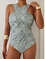Dámské Plavky Jeden kus Slipy Plavky Oblečení na pláž léto Květinový Grafika Do U Bez rukávů Plavky