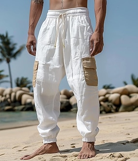 Pánské Plátěné kalhoty Kalhoty Letní kalhoty Šňůrky Kapsy Elastický pas Bez vzoru Pohodlné Yumuşak Denní Venkovní Jdeme ven Módní Na běžné nošení Černá Bílá
