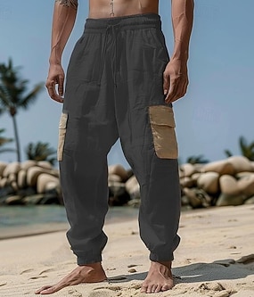 Pánské Plátěné kalhoty Kalhoty Letní kalhoty Plážové kalhoty Šňůrky Elastický pas Straight-Leg Bez vzoru Pohodlné Prodyšné Plná délka Ležérní Denní Dovolená prázdniny Módní Černá Bílá