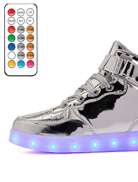 zlaté led svítící vysoké tenisky pro děti a muže s barevnou podrážkou, nastavitelným páskem a lesklým povrchem