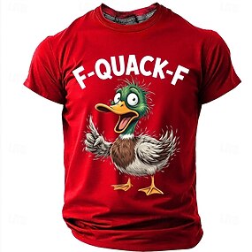 Pánské tričko s potiskem, vzorem kachny, kvákáním, vtipným kresleným motivem, humorným memem, zvířecí slovní hříčkou, grafickým potiskem, krátkým rukávem, kulatým výstřihem, běžným střihem,