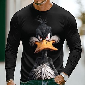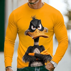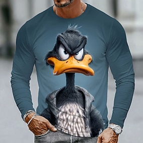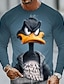 Pánské jednobarevné tričko s dlouhým rukávem a motivem kachny, 3D potisk, kulatý výstřih, vtipné, ležérní, denní, pouliční, modrá, černá, žlutá, jaro, podzim, oblečení, velikosti S M L XL 2XL 3XL