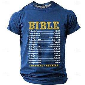 Pánské tričko s tísňovými čísly z Bible, seznam veršů, křesťanské, s grafikou, standardní střih, náboženské, inspirativní, víra, značkové oblečení, velikost S M L XL XXL XXXL