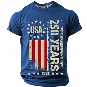 4. července 2026 250. Pánské Pevná barva Americká americká vlajka Tričko Krátký rukáv tričko 3D tisk Tričkový Košile Vintage Retro Vlastenec Denní Festival Modrá 3# modrá 2# Modrá 1# Léto Jaro