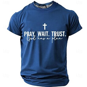Pánské jednobarevné tričko s křížem a biblí, tričko s krátkým rukávem, 3D tisk, kulatý výstřih, vintage retro, denní, festivalové, modrá, černá, vínová, léto, jaro, oblečení, velikosti S M L XL 2XL