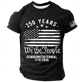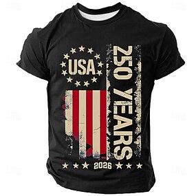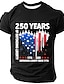 4. července 2026 250. Pánské Pevná barva Americká americká vlajka Tričko Krátký rukáv tričko 3D tisk Tričkový Košile Vintage Retro Vlastenec Denní Festival Černá Bílá Léto Jaro Oblečení S M L XL XXL