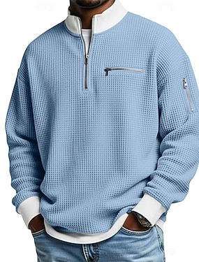 Pánské Vaflové tričko Tričko Dlouhý rukáv Poloviční zip Podzim Podzim zima Pevná barva Tradiční a retro Na běžné nošení Barevné bloky Kapsa na zip Venkovní Domů Sporty a outdoor Světle modrá Zelen