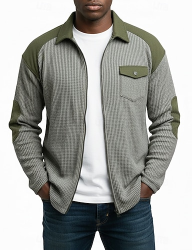 Pánské Lehká bunda Vaflová bunda Neformální bunda Dovolená Ležérní Prodyšné Kapsy Jaro Podzim zima Barevné bloky Bez vzoru Módní Klasické Košilový límec Standardní Černá Námořnická modř Khaki Šedá