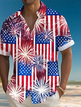 Den nezávislosti Pánské 4. července 250. výročí USA Vlajka USA Vlastenec Košile Letní košile Košile na knoflíky Krátký rukáv Móda pro volný čas Venkovní Dovolená Na den Léto Jaro Přehnutý 3D tisk