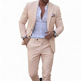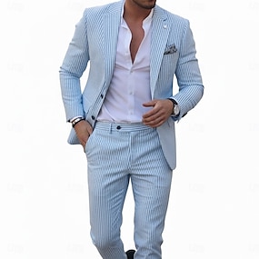 Pánské Sako Zářezový límec Lehký Na běžné nošení Proužky Seesucker Blazer Světlá růžová Nebeská modř Šalvějová Na míru Single Breasted Dvě tlačítka