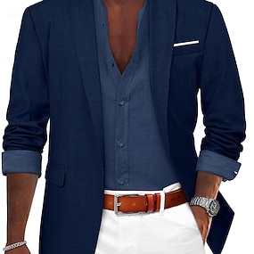 Pánské Plátěný sako Sportovní kabát Svatební Běžné / Denní Módní Celý rok Bavlněné prádlo Jednobarevné Základní Jednořadové sako s dvěma knoflíky Blejzr Bílá Nebeská modř Béžová