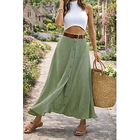 Dámské Módní ve stylu pobřežní babičky léto Maxi Sukně Jednobarevné Rozparek Denní Dovolená Černá Bílá Námořnická modř Oranžová Jaro léto Polyester