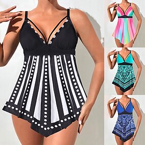 Dámské Plavky Tankini 2 ks Odvážné Plavky Elegantní prázdniny Grafika Geometrické tvary Do V Bez rukávů Plavky
