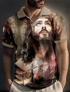 Pánské Ježíš křesťan Polokošile Golfová košile Krátký rukáv Polo tričko Košile s límečkem Vinobraní Na běžné nošení Oblečení na dovolenou Festivalové oblečení Párty oblečení Knoflíky 3D tisk Rubínov