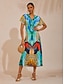 Dámské Žena Volnočasové šaty Midi šaty Vodní modrá Bez rukávů Abstraktní Abstraktní umění Tisk Léto Košilový límec Elegantní prázdniny XS S M