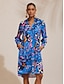 Dámské Košilové šaty Šaty s potiskem Maxi šaty Námořnická modř Meruňková Křivka Kapsy Rozbalte rukávy Flitry Léto Košilový límec Běžné Denní S M L