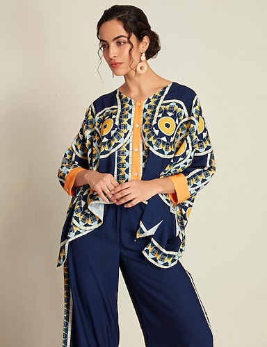 Maxi šaty s geometrickým potiskem a barevnými bloky ze saténu