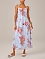 Dámské Volnočasové šaty Dlouhé šaty Maxi šaty Vodní modrá Bez rukávů Oceán Léto Krk ohlávky Elegantní prázdniny XS S M