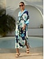 Dámské Kaftanové šaty Šaty s potiskem Midi šaty Midi šaty Vodní modrá Polodlouhé rukávy Květina / Rostliny Tisk Jaro léto Do V Plážový styl Plážové XS S M