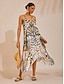 Dámské Žena Volnočasové šaty Midi šaty Trávová zelená Krátký rukáv Palma Potisk Jedno rameno Vázání vzadu / vázání vpředu Léto Asymetrický Spadlý výstřih prázdniny Pro volný čas S M L