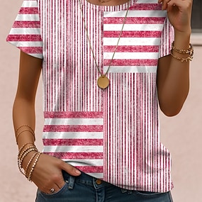 Košile pro ženy V-výstřih knoflíková blůza grafika pruhů stylová pláž krátký rukáv límec běžná dámská trička každodenní knoflíky potisk růžová modrá zelená šedá jaro podzim