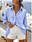 Dámské Košile Saténová košile Tisk Proužky prázdniny Módní Denní Dlouhý rukáv Košilový límec Běžné topy Denní Dovolená Jdeme ven Vodní modrá Léto Jaro Podzim