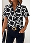 Dámské Košile Grafika Geometrický Vinobraní Denní stylové Krátký rukáv Košilový límec Běžné topy Denní Černobílá Černá Bílá Žlutá Světlá růžová Léto Jaro