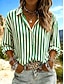 Dámská košile s dlouhým rukávem zapínání na knoflíky blůza grafická geometrická pruhovaná vintage stylová moderní krátký rukáv límec běžné topy každodenní světle zelená červená modrá fialová oranžová