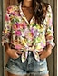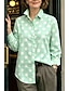 Dámská košile z flaxu jako prodyšná lehká košile s knoflíky tunika s límečkem dlouhý rukáv květinová grafická pohodlná běžné topy práce každodenní potisk žlutá modrá hnědá růžová jaro podzim zima