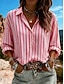 Dámské Halenka Knoflíky Tisk Proužky stylové Na běžné nošení Dlouhý rukáv Košilový límec Běžné topy Denní Vodní modrá Světlá růžová Trávová zelená Léto Jaro Podzim