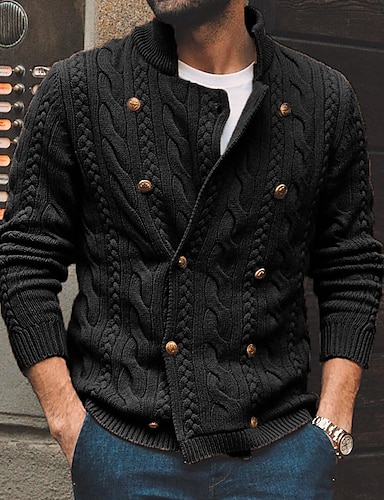 Pánské Svetr Kardigan Rolák Plést Tlačítko Pletený Pevná barva Rolák stylové Retro styl Oblečení Podzim Zima Černá Bílá S M L