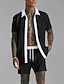 Pánské Košile s páskovým límečkem 2 kusy Sada košile Letní sada Odpovídající sady Oblečení na pláž Černá Bílá Šedá Poloviční rukáv Jednobarevné Límeček Venkovní ulice Šňůrky Oblečení Polyester