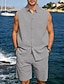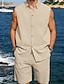 Pánské Lněná košile 2 kusy Sada košile A Kraťasy Lněné šortky Plážové šortky Soubor Bez vzoru Ležérní Denní Venkovní Přehnutý Bez rukávů Léto Módní Na běžné nošení Pohodlné Oblečení