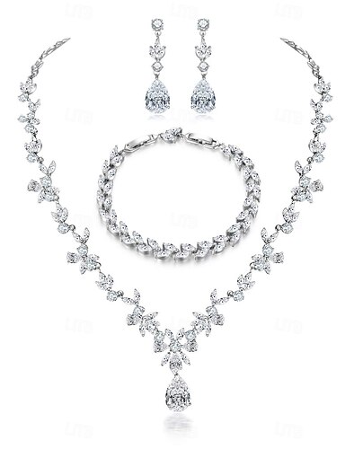 Svatební šperky Soupravy 3 Zirkon Umělé diamanty 1 x náhrdelník 1 x náramek Náušnice Dámské Elegantní Přizpůsobeno Klasické Půvab Klasika láska Drahocenný Y ve tvaru Sada šperků Pro Svatební Dar