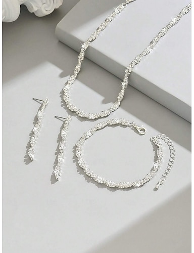Řetězový náramek dvoudílný kostým slitina 1 náhrdelník 1 náramek náušnice dámská stylová jednoduchá základní klasická šperková sada na večírek svatbu snubní kruhové náušnice nevěstinské šperkové