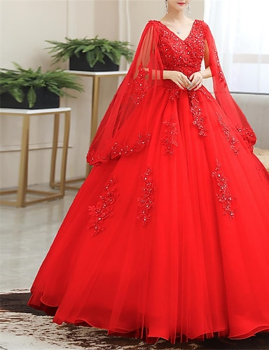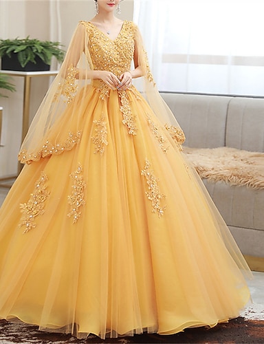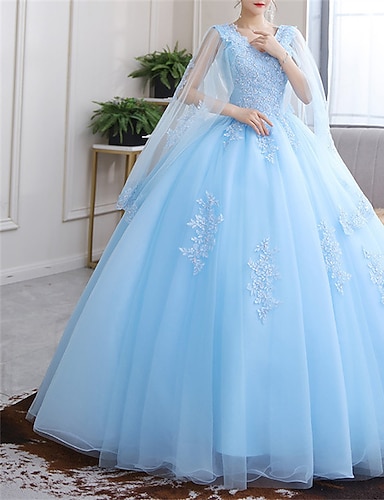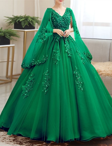 Ball gown podlahové délky plesové šaty princezna nadýchané dlouhý rukáv v krku výkon quinceanera s krystaly aplikacemi
