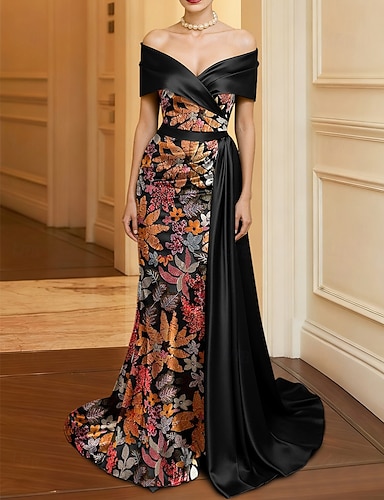 A-Linie Pouzdrové Na zem Večerní šaty Plesové Elegantní Vinobraní Květinový Bez rukávů Úzký výstřih Zahradní slavnost Svatební Satén Záda "jako nabíraná voda" s Květinový potisk Rozparkem
