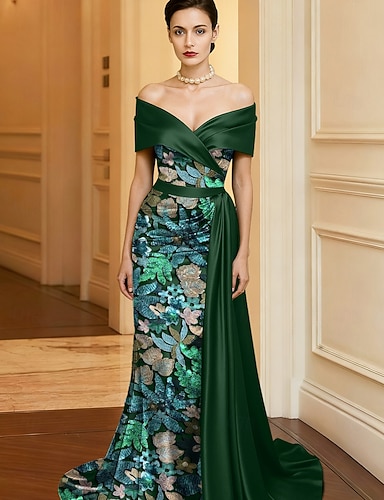 Pouzdrové Na zem Korálkový výšivkový Formální šaty Šaty pro matku nevěsty Večerní šaty Plesové šaty se sukní Formální šaty Elegantní Třpytivé Třpyt Bez rukávů Jedno rameno Svatební Formální Peleríny